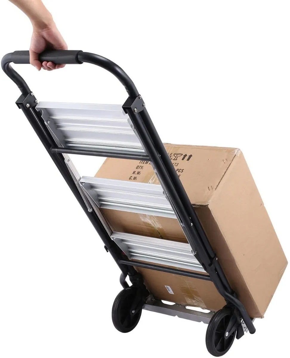 Introducing the Eckman Lightweight 2 in 1 Ladder Trolley, the versatile tool that elevates household tasks to a new level of safety and ease. This innovative device effortlessly combines a 3-step folding ladder with a heavy-duty dolly, allowing you to accomplish tasks with greater efficiency and confidence.