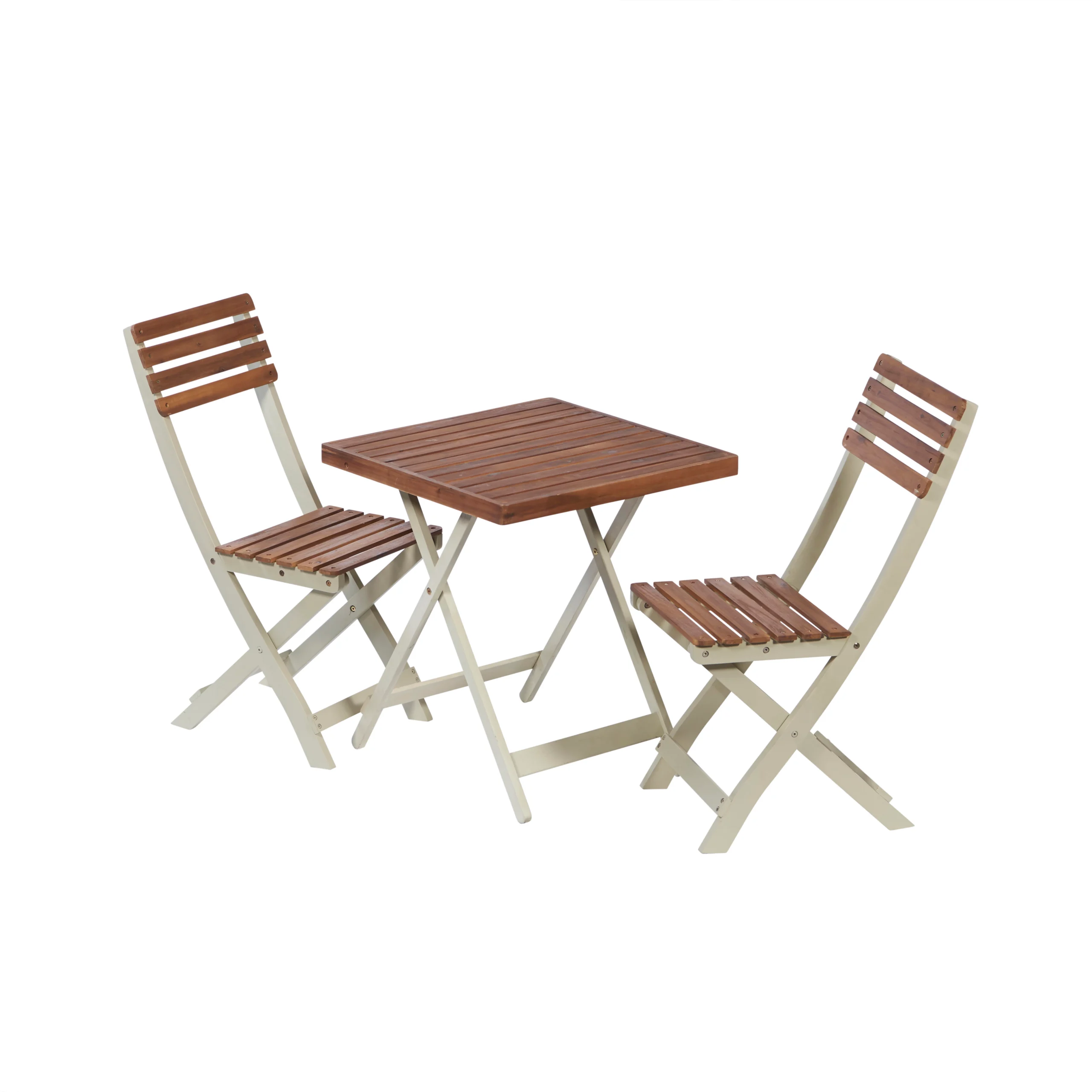 Constructed from high-quality Acacia hardwood, this bistro set is built to withstand the rigors of outdoor use, ensuring years of enjoyment. Additionally, its foldable design allows for easy storage when not in use, making it ideal for smaller outdoor spaces or for seasonal storage.
